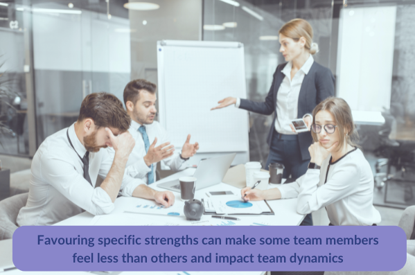 However, as a leader, avoid valuing one type of strength over another. Favouring specific strengths can make some team members feel less than others and impact team dynamics.